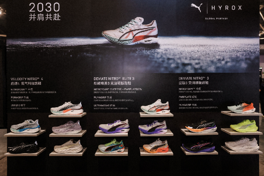 在赛事现场,PUMA带来了三款热门鞋款的试穿体验,为全国的运动员打造一站式的体验空间,助力大家选择更适合自己的专业鞋款。除了备受关注的HYROX独家联名款彪破3(HYROX Deviate NITRO™ 3) ,彪破精英3(HYROX Deviate NITRO™ Elite 3) ,彪速4(HYROX Velocity NITRO™ 4),更多新款配色悉数亮相,吸引众多现场观众的关注和试穿。